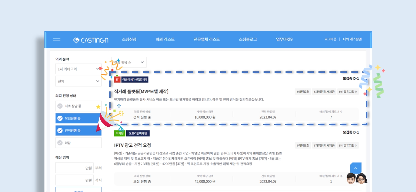 3. 의뢰리스트 등록 & 전문업체 모집 시작