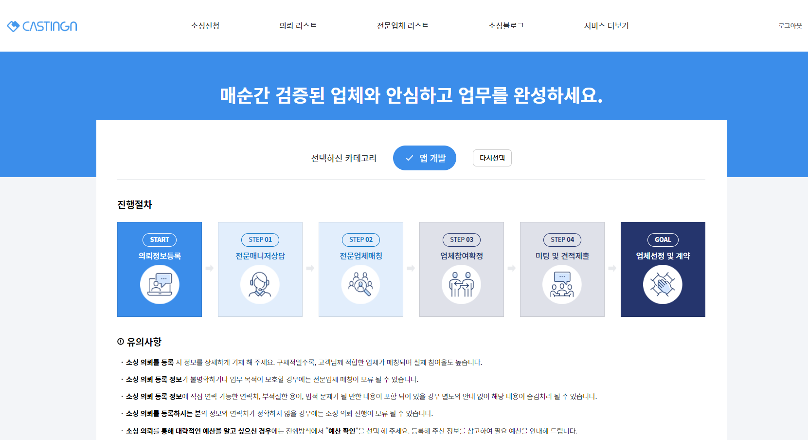 서비스 소싱 요청 페이지 체크 포인트 *캐스팅엔은 업무마켓9의 견적 전문 서비스입니다.