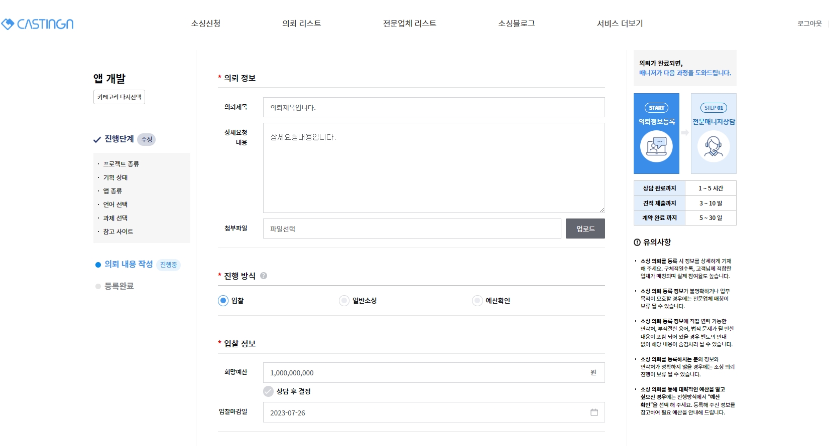 ✅ 서비스 소싱 요청 페이지 체크 포인트 *캐스팅엔은 업무마켓9의 견적 전문 서비스입니다.