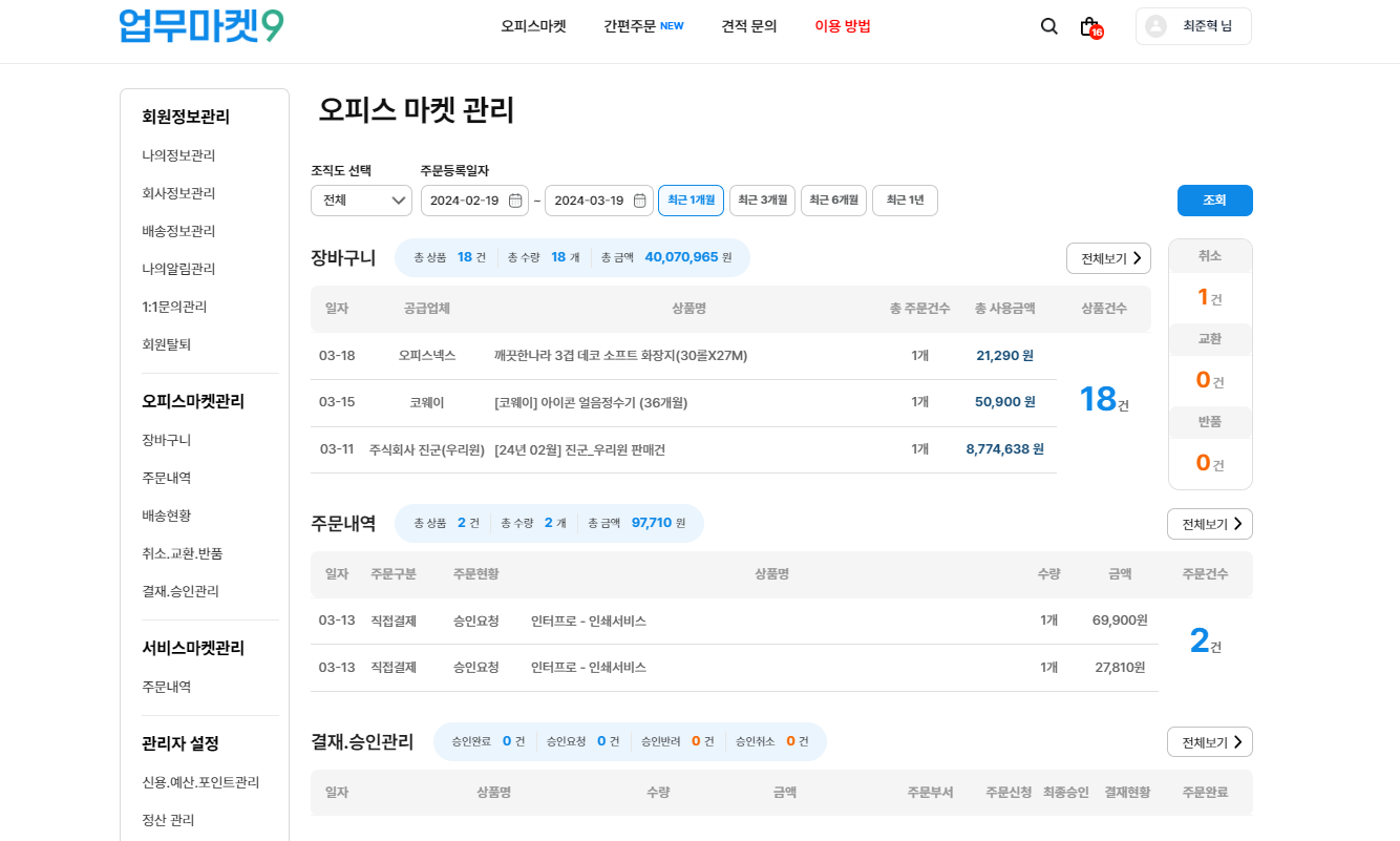 업무마켓9 간편주문 페이지