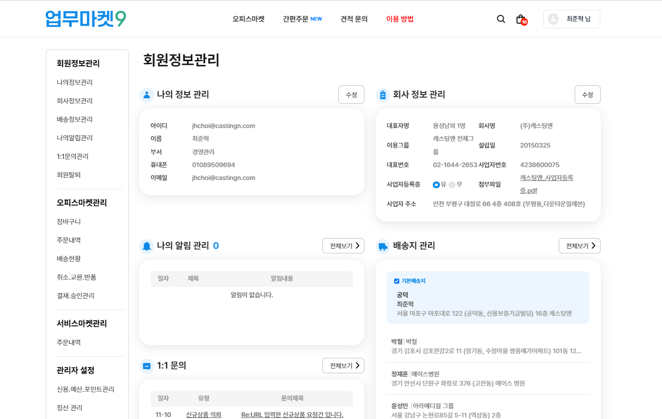 업무마켓9 회원정보관리 페이지