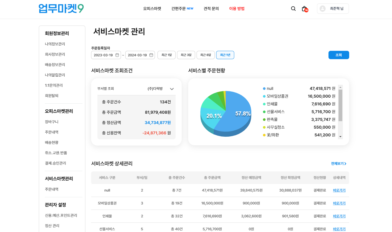 업무마켓9 메인 페이지