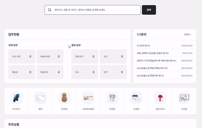 업무와 관련된 <단순구매형> 제품들을 카테고리별로 확인하고 구매할 수 있는 페이지