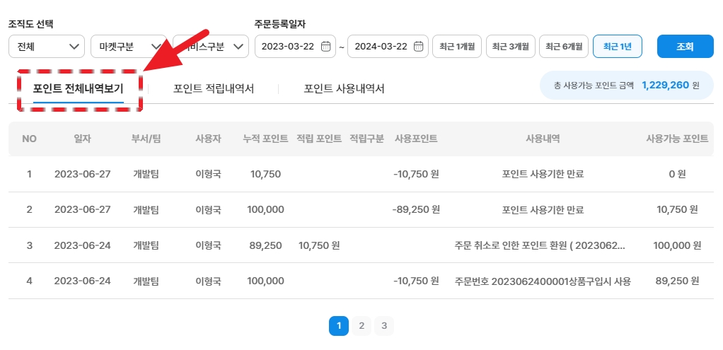 포인트 적립 내용 및 사용 내역을 통합해서 확인할 수 있습니다.