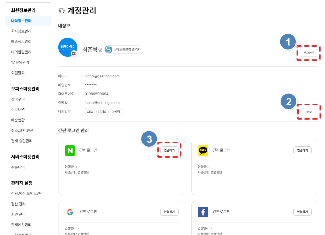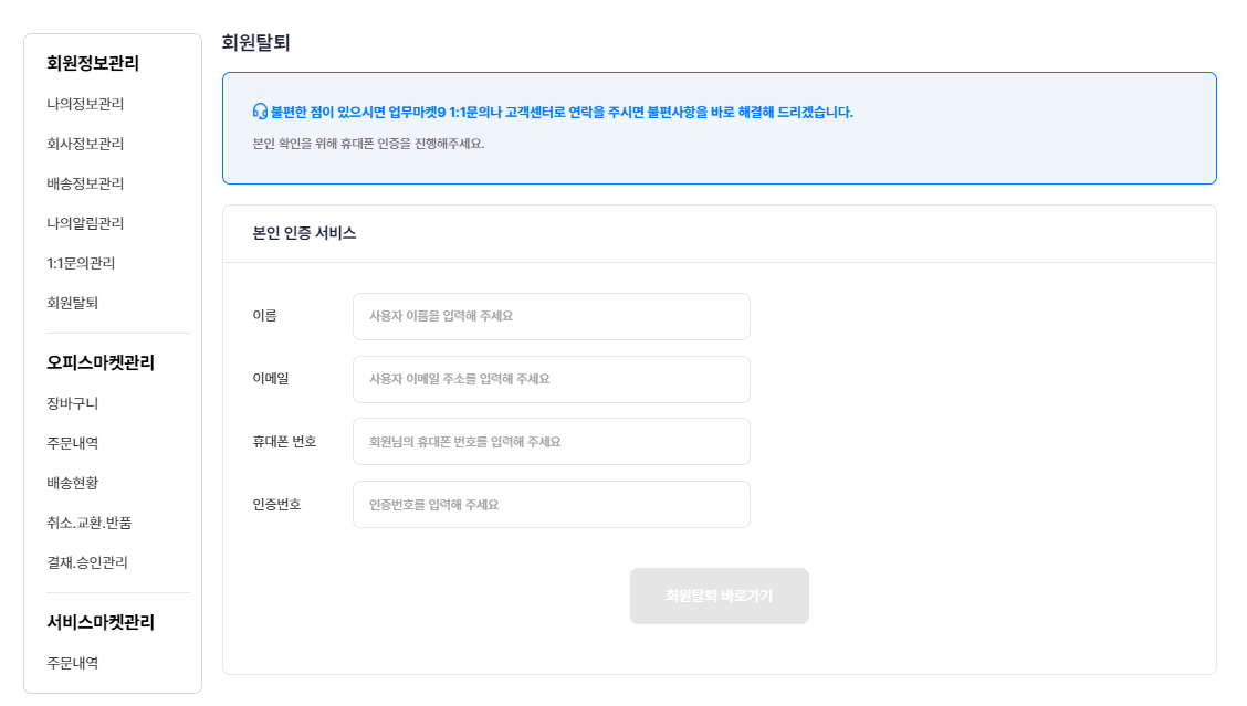 업무마켓9 회원정보관리 페이지