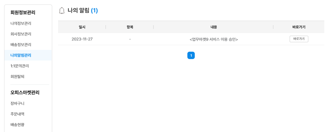 업무마켓9 나의알림관리 페이지