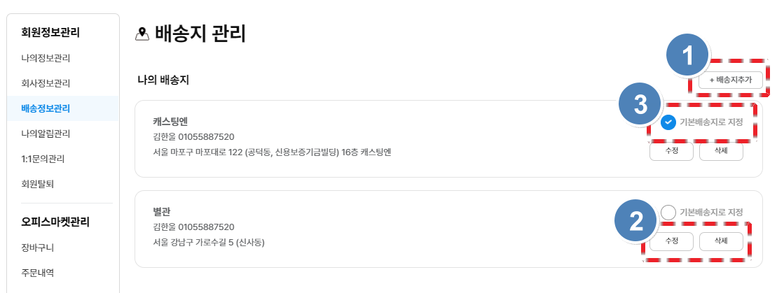 • 2️⃣arrow-up-right 배송지 수정/삭제
