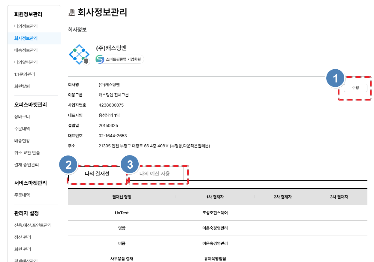 • 1️⃣arrow-up-right 회사 정보 수정(*관리자만 활성화)