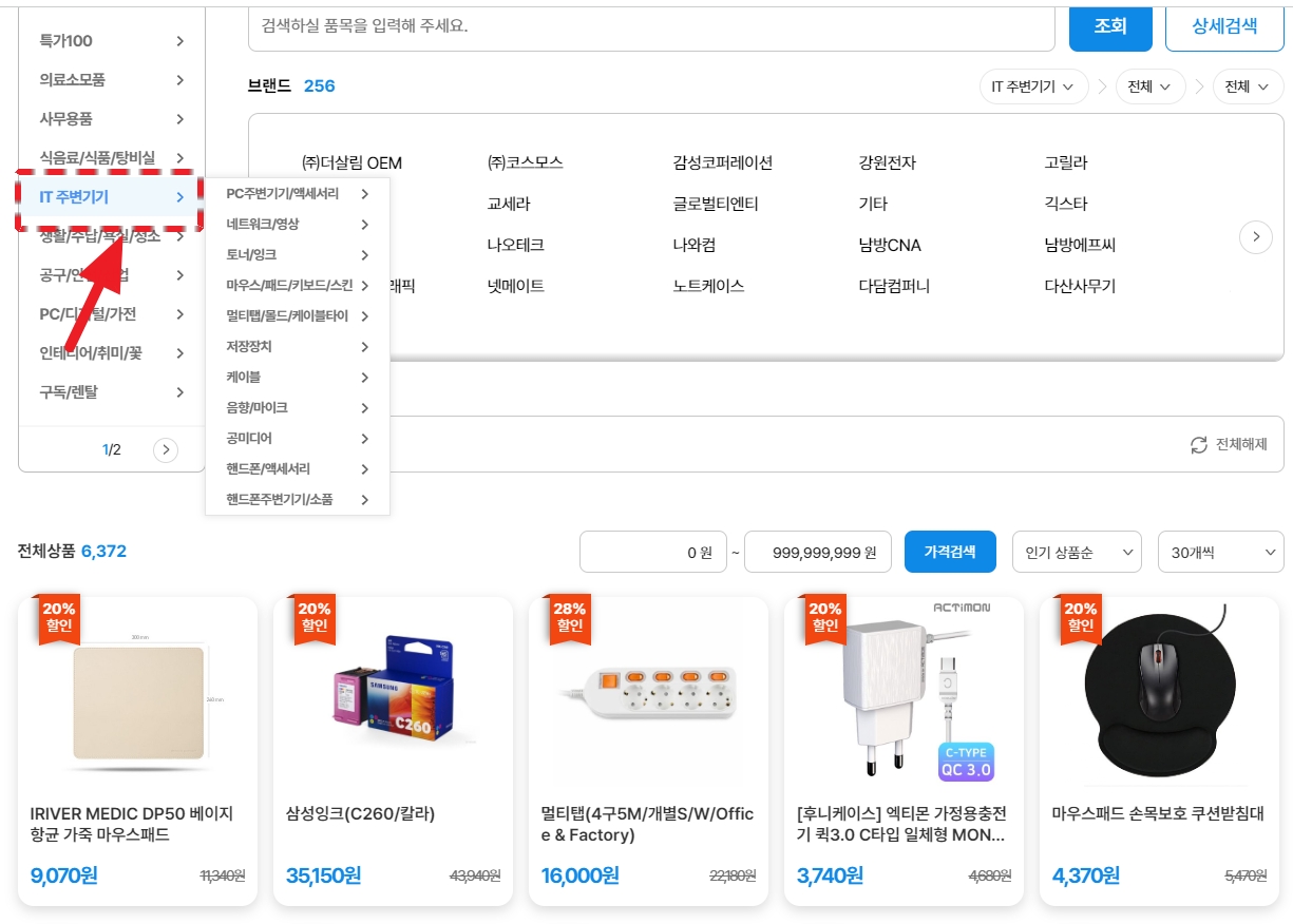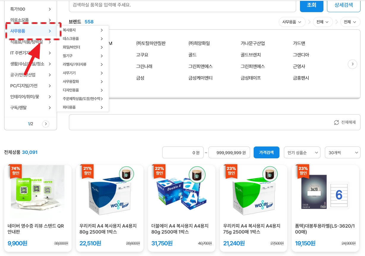 사무용품부터 간식, IT 주변기기, PC/가전, 그리고 구독 상품까지 약 30만개에 달하는 제품을 카테고리별로 확인할 수 있습니다.