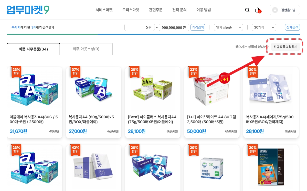 업무마켓9 제품과'관련된 모든 구매가 이루어지는 페이지, '오피스마켓' 페이지를 알아봤습니다.