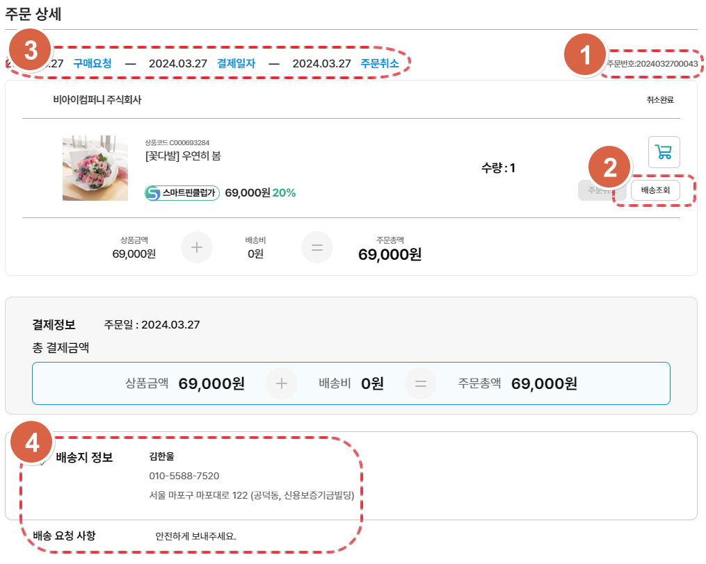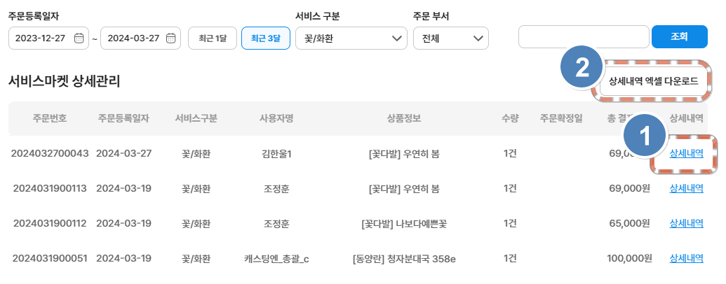 ✅'꽃/화환서비스 주문 승인 관리' 페이지의 체크 포인트