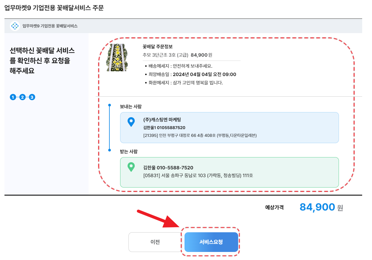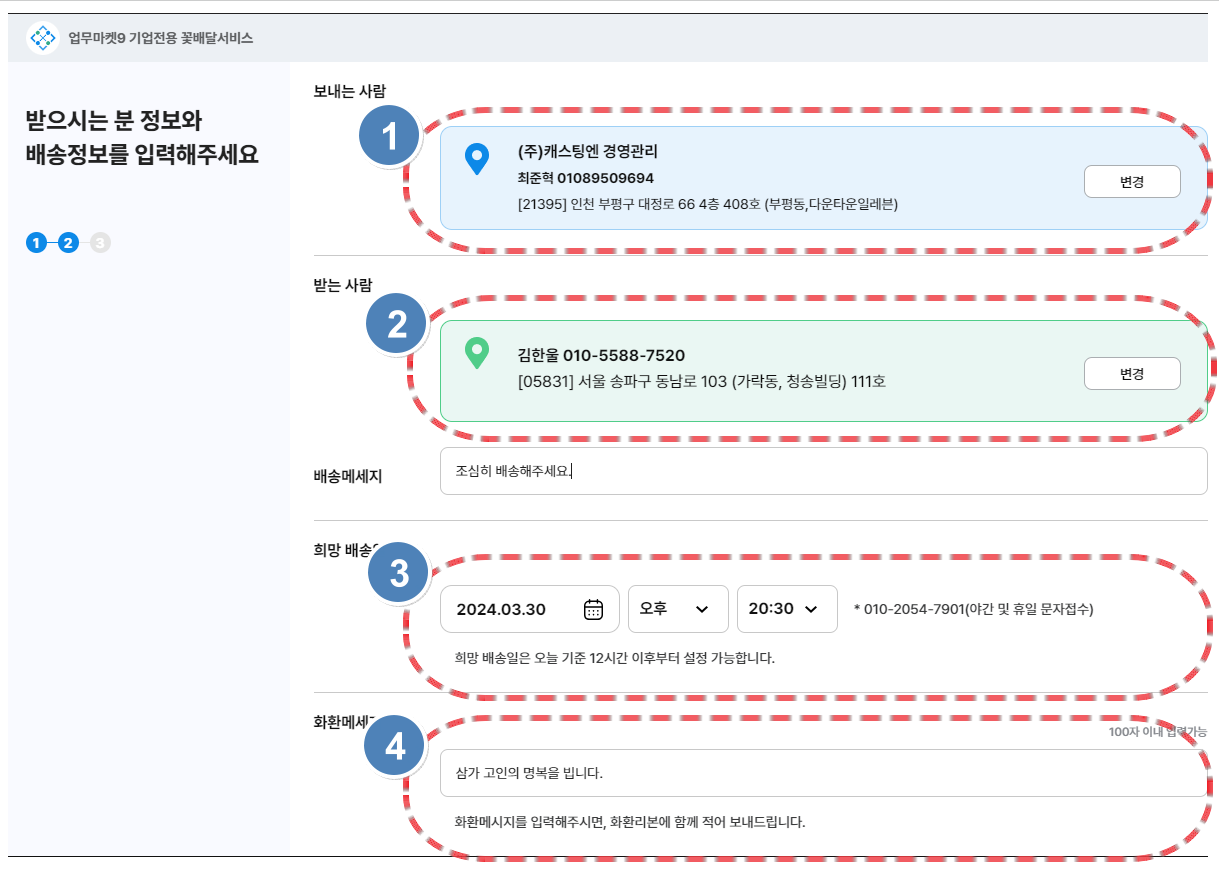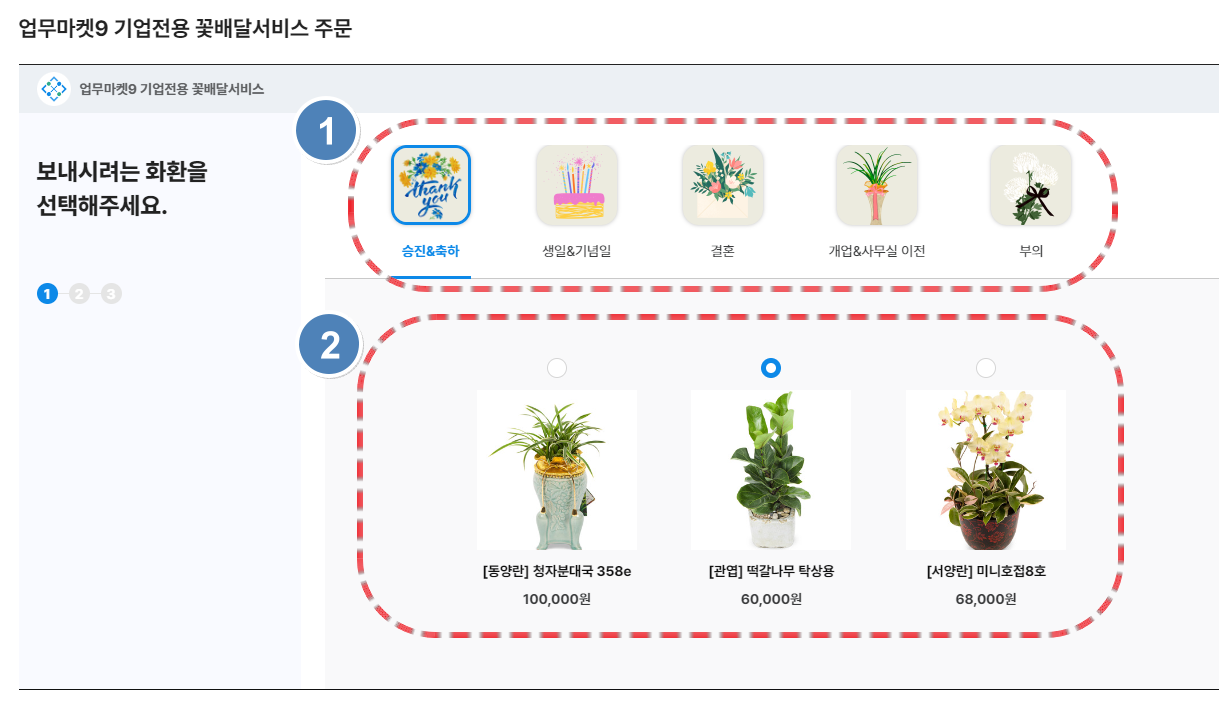 업무마켓9 꽃/화환 서비스 주문 화면 ②