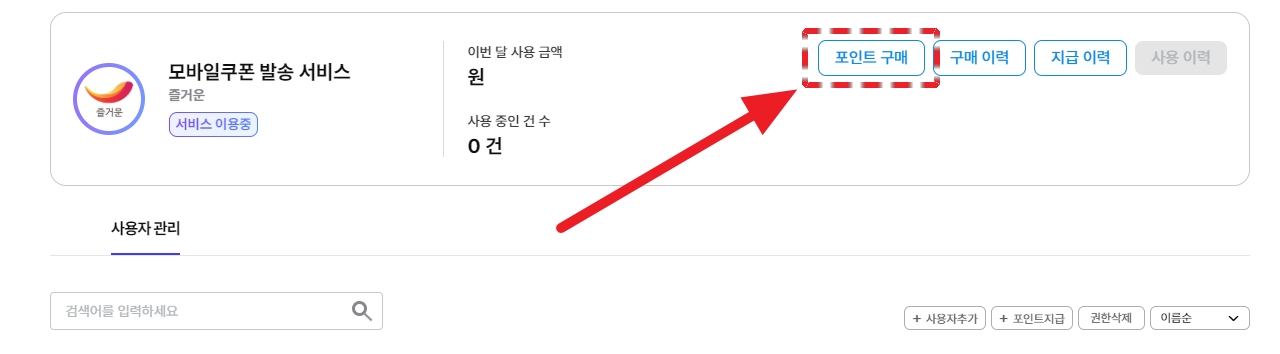 구성원들이 모바일상품권을 이용하려면 관리자가 포인트를 지급해야 합니다.