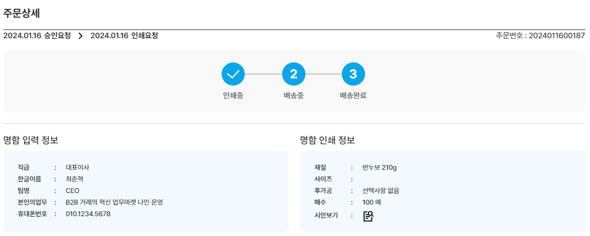 ✅ '명함서비스 주문 이력' 페이지의 체크 포인트