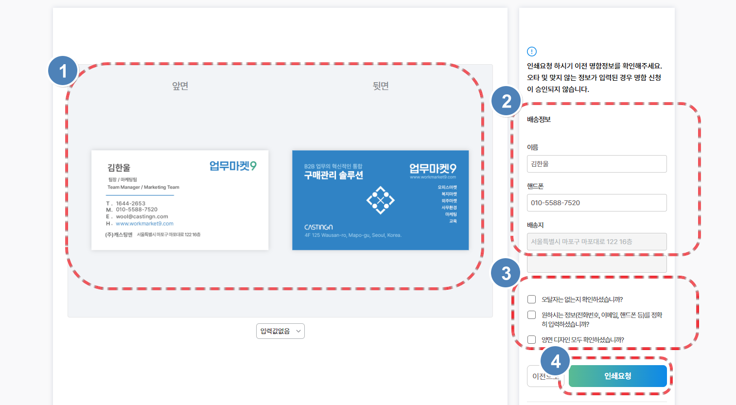 명함 인쇄 요청을 완료하셨나요?