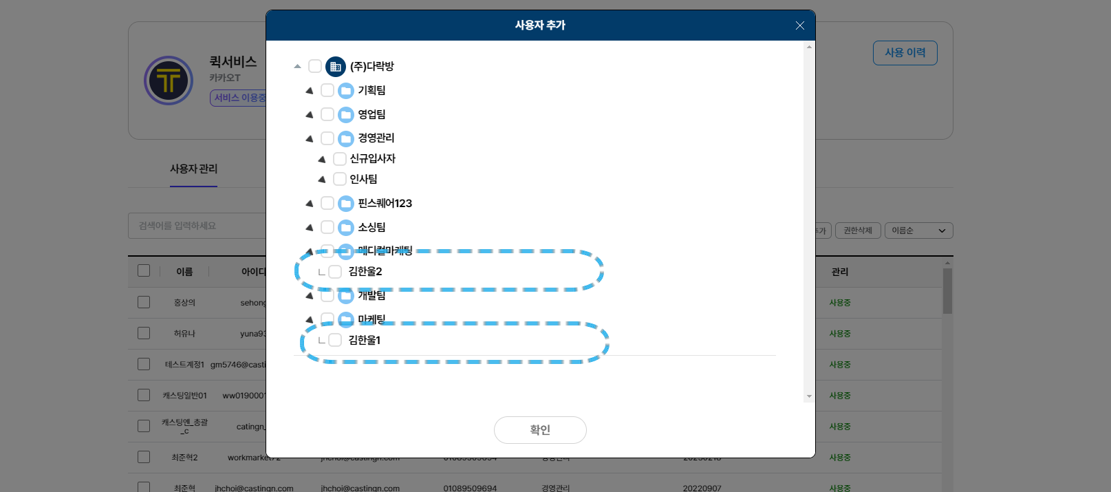 ✅ '퀵서비스 사용자 관리' 페이지의 체크 포인트