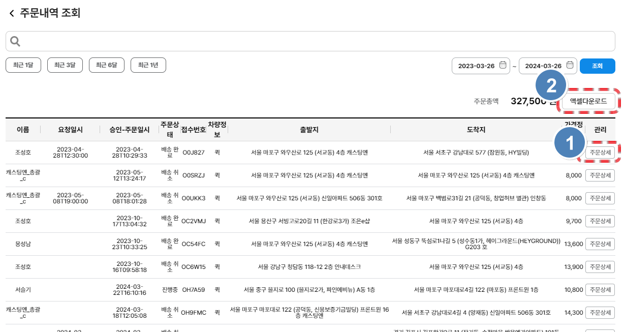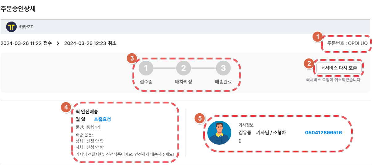 ✅ '퀵서비스 사용 이력' 페이지의 체크 포인트